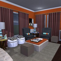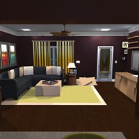 This space is a small 8x10 room. The TV console's two back legs has to be cut to sit in front of the fireplace (which is broken and cannot be used). Just wanted to create a vibrant comfortable space for a young professional women to relax.
